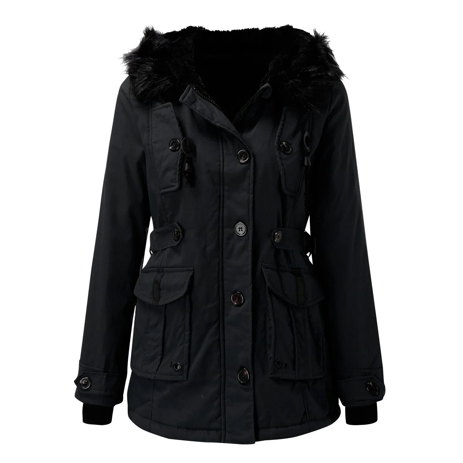 - Praktische Details: Mit Reißverschluss, Knopfleiste und funktionalen Taschen ausgestattet.