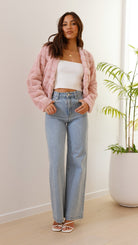 Diese Crop Jacke für Damen bringt frischen Schwung in deine Garderobe. Mit ihrem kurzen Schnitt und den klaren Linien lässt sie sich vielseitig kombinieren – ob zu Jeans, Röcken oder Kleidern. Raffinierte Details unterstreichen den modischen Charakter und machen die Jacke zu einem Hingucker für verschiedene Anlässe.