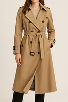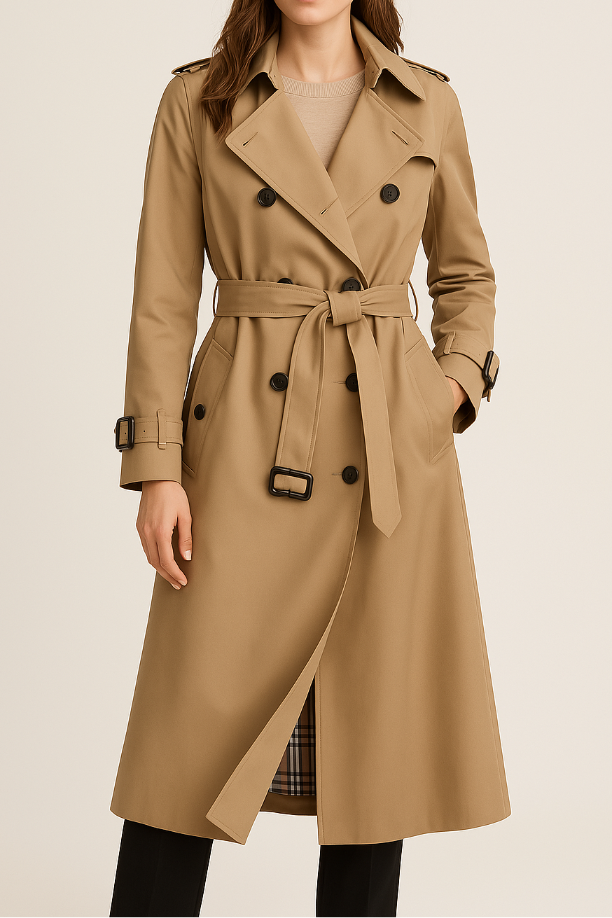 Langer Mantel für Damen mit Zweireiher und Bindegürtel