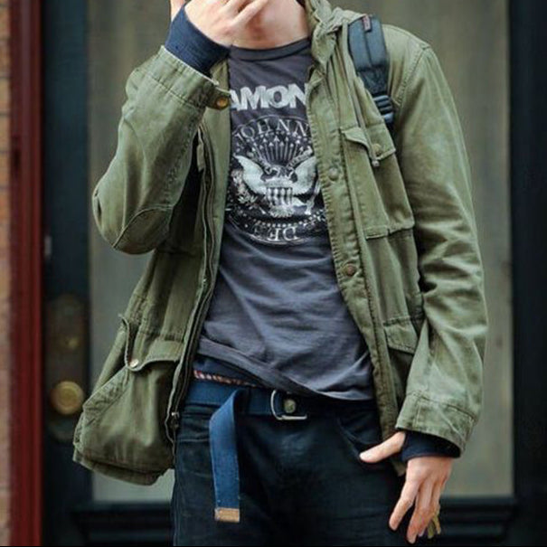 - Brusttaschen: Zwei aufgesetzte Taschen mit Klappen